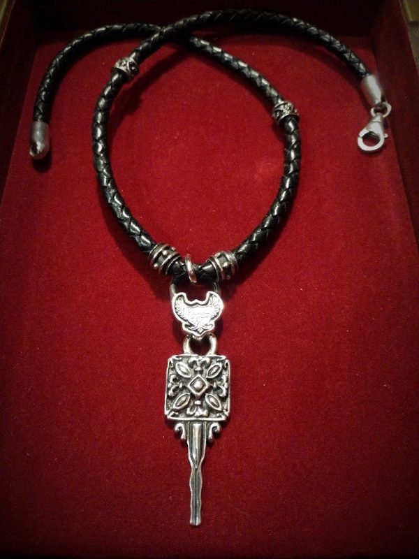 Powerful and stunning handcrafted solid Sterling Silver pendant on custom genuine 19″ long leather and Sterling Silver beads and clasp necklace.